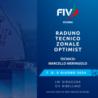 RADUNO TECNICO ZONALE OPTIMIST - LNI SIRACUSA - CV RIBELLINOnews del 10.05.2024RADUNO TECNICO ZONALE OPTIMIST - 07-08-09 GIUGNO 2024 Il Comitato VII Zona FIV, organizza Il raduno tecnico Zonale dal 07 AL 09 Giugno 2024, presso le Società affiliata FIV, Lega Navale Italiana sez. Siracusa e Circolo Velico Ribellno. Ammissione: Iscrizioni: Programma: Quota di partecipazione: Responsabilità: Clausole di esclusione: Abbigliamento: AGGIORNAMENTO ISTRUTTORI DI CLASSE Le attività teoriche pratiche del raduno saranno convalidate come aggiornamento istruttori, Per info: Ernesto Martinez 335.6294866 – ernesto@zenitramsails.com |