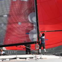 Dopo la seconda giornata caratterizzata da vento debole e incostante che non ha permesso il completamento di nessuna prova, la terza giornata regala un maestrale che si impadronisce della baia di Capo d’Orlando già dalle prime ore del mattino, con range 7-10 nodi, ideale per la flotta. Alle 10:00 il Comitato di Regata dà il via alla procedura di partenza che avviene senza nessuna penalizzazione. Gli equipaggi si marcano a vicenda ma si avvicinano alla linea dello start entro un margine di sicurezza. Partono quindi quasi tutti in assetto, con Tetta e Joy che riescono a prendere subito qualche lunghezza di vantaggio, seguiti da Varenne e QQ7 che ingaggiano un corpo a corpo sino al termine della regata. Anche il resto della flotta è quasi tutto compatto ed i pochi errori di concentrazione costano immediatamente qualche posizione.